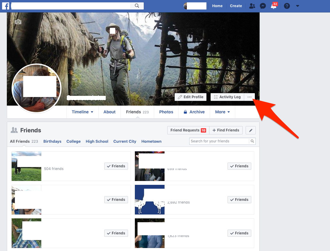 2. Near the top right of your friend's page, locate the three little gray dots in a parallel line, and click them.